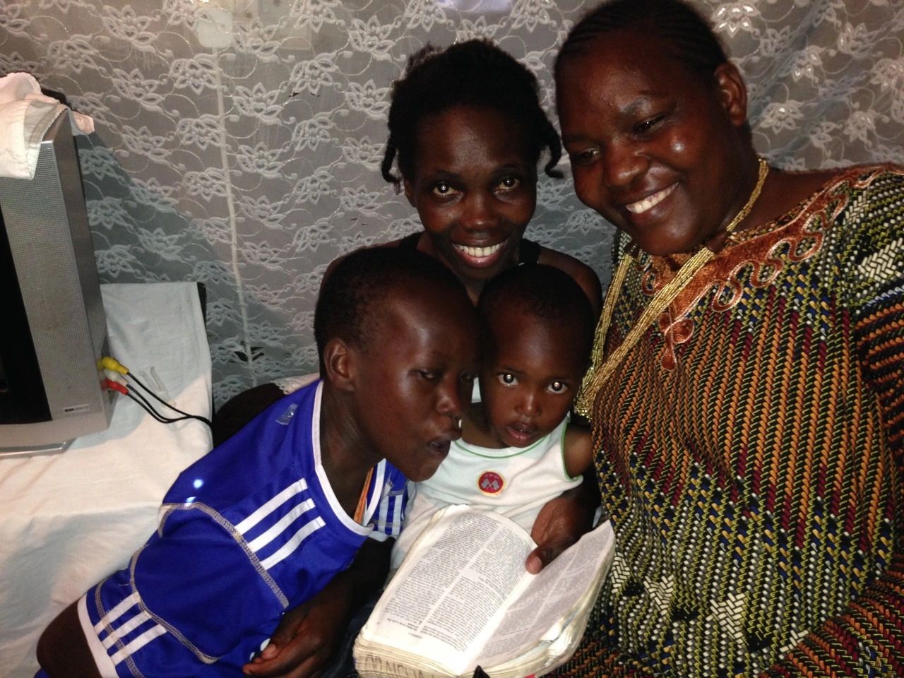 As we reach our destination, a tiny tin house—a house connected to fifty other houses via thin tin sheets, the chaos gives way to serenity. Inside this darkened room there is light. Peace in the midst of chaos. A woman sits with her baby boy. Virginia, a widow, near death several times, is now serenely reading Psalm 69 to us. Recounting the times Deaconess Caren has faithfully come to visit her, bringing hope and light in dire times.