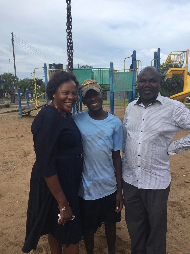 One of Lorna’s “children”, Oscar, who she has cared for since he was a young child. He now helps out at Pt. Of Grace Academy. Pastor David Chuchu on the right, 2020