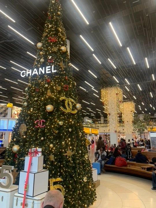 On my return home,19 days later, I flew through Amsterdam. Again, I was greeted by Christmas trees-Chanel trees no less!-glittering towers of lights and glass, all tastefully decorated. Sipping a cappuccino, chatting with a pre-med student from Canada and checking my emails, I succumbed to it all, putting my normal “It’s too early to decorate” response in the parking lot.