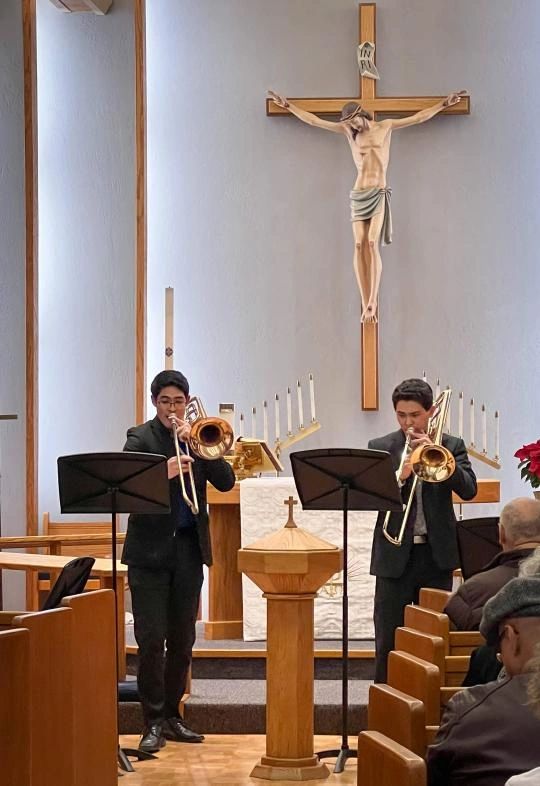 The talented musicians stood before me holding their polished horns tenderly as a parent holds their child. They played hymns, sonatas, a march, and other pieces by famous composers and modern artists too. There were selections played along with the piano or the organ that were rich and satisfying. I especially enjoyed it when two young men played a trombone duet, the harmonized notes coming out of the bell of their instruments as they slided back and forth with ease and confidence. I closed my eyes and imagined this wave of music floating out to those listening.