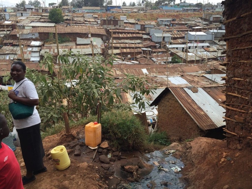 Kibera, the largest slum in Kenya, home to over a million people. Note the water tap adjacent to the raw sewage flowing freely between houses.