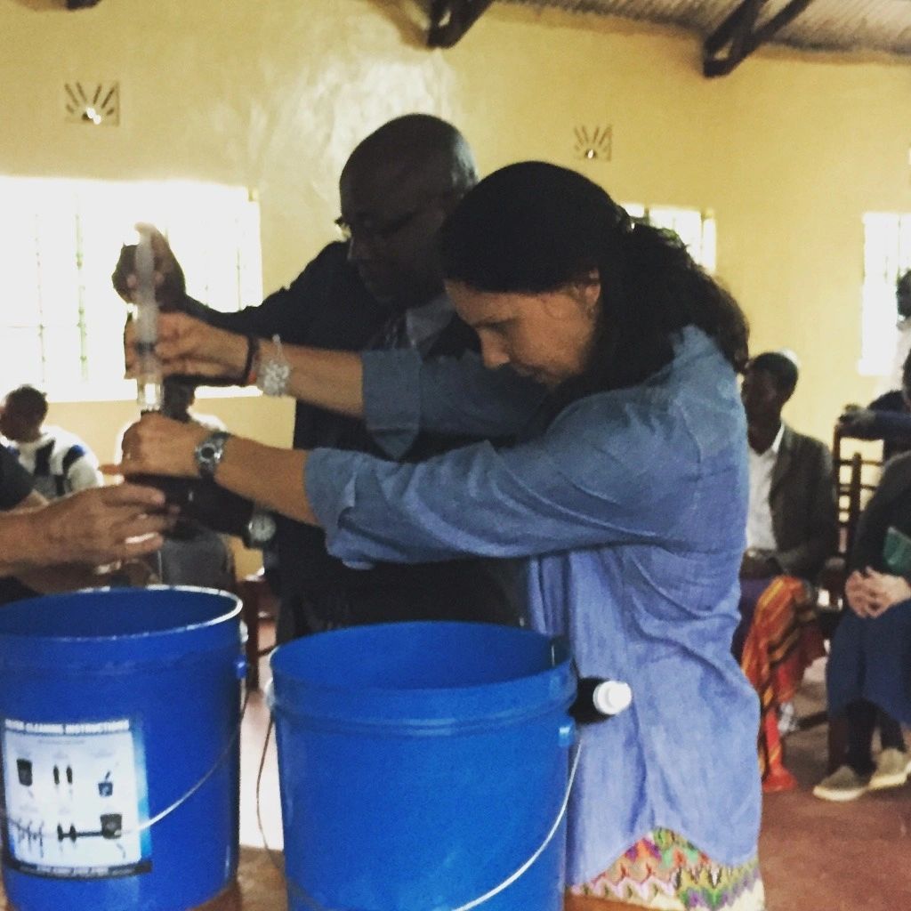 As we sipped our tea, we got right to it, small talk thankfully eluded. Carrie Beth filled the plastic bucket with water, added dirt to make the water a nice cocoa color, and then ran it through the Sawyer water filter. Well, my skepticism faded along with the brown colored water as it became completely clear once it was filtered. Soon, we were laughing about our initial hesitancy about meeting, and a lasting friendship developed. A few months later, Carrie met me in Kenya and we began working together to provide clean water to those in need.