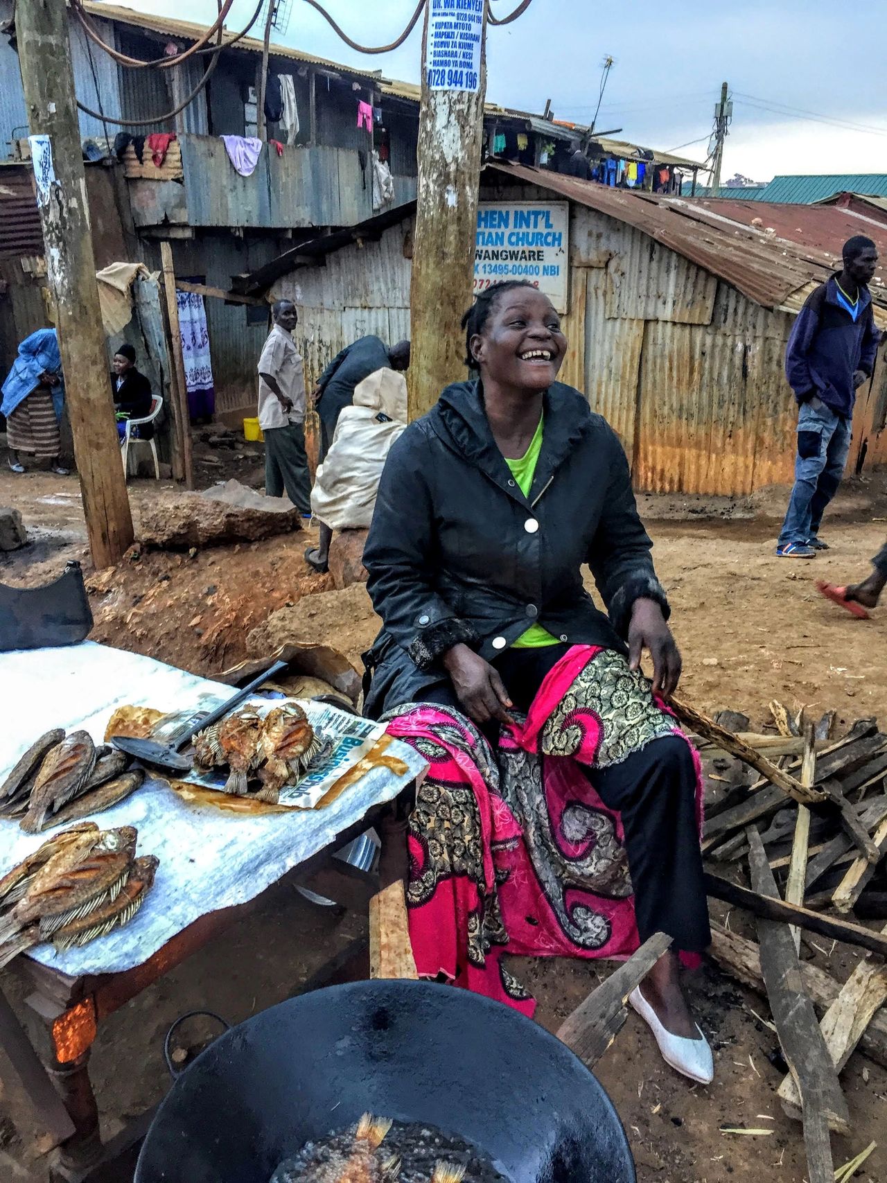 Obviously, I did return to Africa. And, I did more than skim the outskirts of the slums, venturing deep inside the cacophony of blaring radios, car horns, motorbikes, kids at play, and the movement of life on the streets. Led by the tender hands of my deaconess sisters, we walked the maze of dirt roads and paths winding through tightly packed shanties constructed out of plywood, mud or tin with no electricity, no running water, no toilets.  We walked past crudely built wooden stands selling vegetables, and kids kicking a “soccer ball” made of plastic bags rolled together and secured with twine~their playground was an abandoned railroad track.